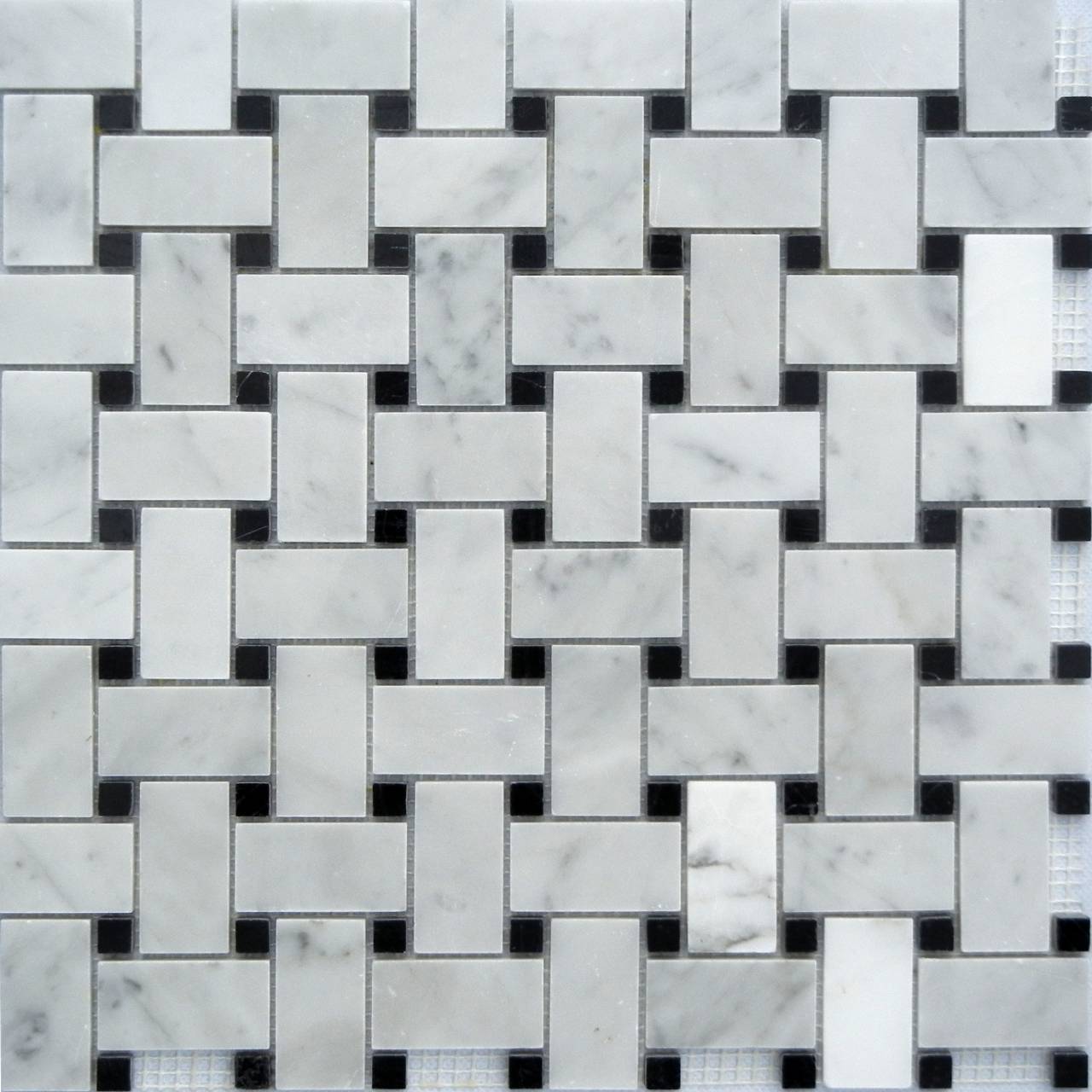 Carrara Marble POLISHED Basketweave Mosaics with Black dots